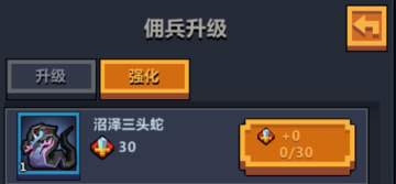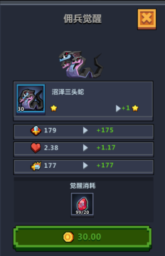 在佣兵升级系统中需消耗相应的金币来提升佣兵战力与属性,佣兵最高等级为30级,