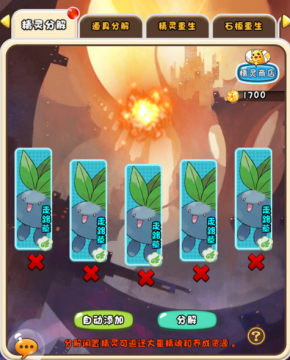 分解不要的精灵就可以获得精灵精魂了,还可以获得金币。