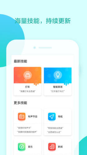 爱芽app,多品类内容,想听就听;语音打车,多轮对话;多种说法,随心问;海量技能,持续更新;智能家居,动嘴不动手...空调、摄像头、电视等,无论在哪,都能一嘴掌握。
