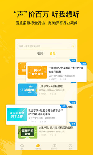 比比招标是一款真正完全免费看项目信息的app,无需任何费用,下载即可免费查看所有项目信息,让您不再烦恼。