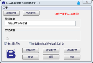 boo迷你MP3剪切器是一款音音频剪切工具。别看boo迷你MP3剪切器体积小,但其功能还是挺强大的,而且boo迷你MP3剪切器的界面也很美观,操作简单方便,是个不错的MP3音频剪辑工具。