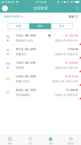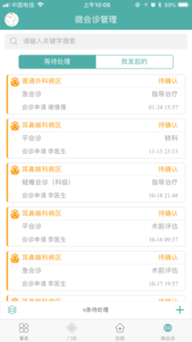 门诊、住院及会诊患者的各类信息可实时呈现在医生手机上,供医生随时掌握患者病情、移动进行事务处理。