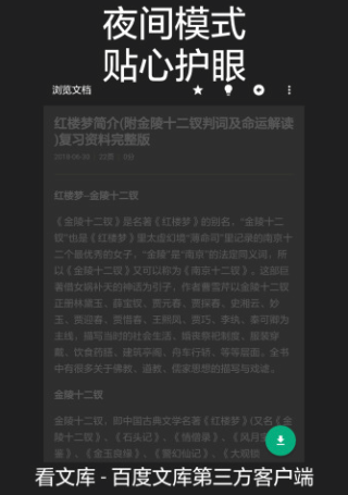 看文库是一款百度文库第三方客户端,不臃肿,体验流畅,看文章或者是下载都方便
