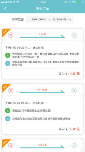 当你有急件需求时,草根吉峰达将自动计算出离你较近的认证骑手,将您的订单信息推送给他,他会上门取货,把货物送达目的地。