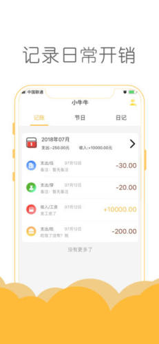 小牛牛app,集合了收支记录、节日纪念日记录以及心情日记记录等多种记录功能,用最简单小巧的方式,帮助每个用户将每天的日常记录下来。