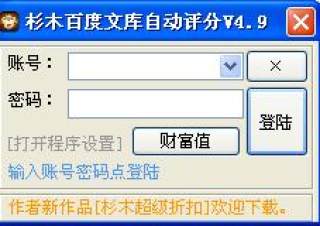 百度文库积分获取器是一款自动登录百度文库,随机找文章评分,以增加财富值的软件。由于百度的规则,每天只有前十次评价才有效。所以这个工具每次也就评分十次。