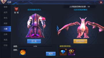 斗兽:公会斗兽拥有不同的阶数,通过喂养兽灵丹可以提升斗兽的阶数,斗兽的阶数越高,击败斗兽时获得的奖励就越丰厚,兽灵丹可以通过完成公会任务获得哟~