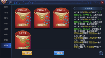 红包:公会自然离不开社交啦,除了各种pve和pvp玩法外,公会还有红包系统,玩家们可在公会发放红包,福利齐享~