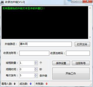 3、设置外链路径、线程数量、间隔时间、每次发布外链数等;