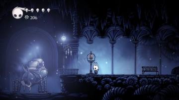 神圣巢穴的首都——泪之城(City of Tears),是一座位于洞穴中的繁荣都市,那里随时都下着雨。就在发现它十个小时之后,笔者偶然经过了宁静的蓝湖(Blue Lake)。打开地图,笔者发现这片庞大的水域正好坐落在泪之城的正上方,而之前的一切也就有了合理的解释。《空洞骑士》并不会将这些信息直白地告诉你,它会让你自由自在地探索与发现,并最终形成属于自己的解读。