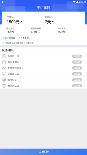 有一种需求,叫资金周转,有一种钱包,叫牛门钱包!现在就拿起它,下载它,安装到您的手机,让您畅享极速贷款56秒到账的体验,原来贷款会如此简单,如此方便。