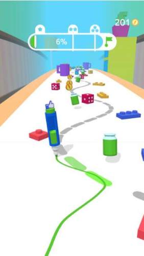 1、玩家左右滑动来操作铅笔在规定的线路上画线行驶;