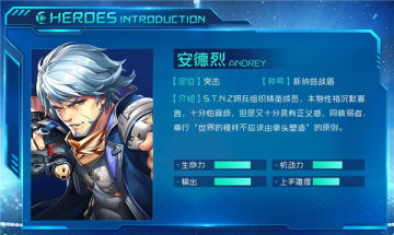 新手玩家最早能接触的半肉型英雄就是安德烈,不要因为是初始英雄之一就小看他哦!安德烈有肉有输出,初始血量1350,移动速度5.4,前中期伤害不低且在所有突击型英雄中血量、防御力和移动速度都算比较高的了,再加上他可以升级技能提高基础伤害和增加回复速度和技能减速效果,中后期可以说是令人发指的团战搅屎棍,1技能跑的贼快,很难被针对。