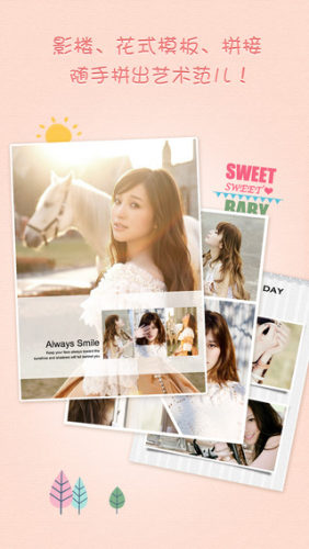 模版拼图、自由拼图和图片拼接3种拼图模式,丰富的模版,清新的背景,助您建筑个性图片墙。
