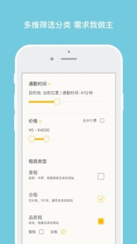 手指一划,轻松选择价格范围,有无中介费,合租整租,还有个性标签等你任性选!
