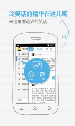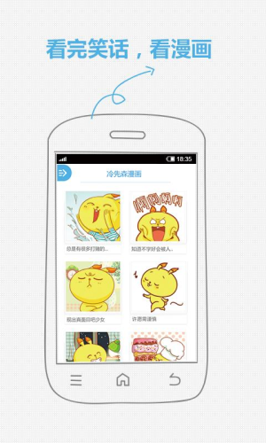 快乐也能随身携带,微博上最火的冷笑话精选,每天给超过2000万人带来快乐。每日奉送最精彩冷笑话,绝对是您居家旅行、行走江湖的必备猛药!2000万人都喜欢微博上最火最受欢迎的“冷笑话精选”,超过2000万人喜欢与推荐!最新鲜冷笑话每天提供最精彩的新鲜冷笑话,让你快乐每时每刻。支持分享到微博独乐乐不如众乐乐,支持将有趣的笑话分享到“新浪微博”、“腾讯微博”。支持分享到QQ空间把你的乐趣分享到QQ空间,让你的好友一起笑。冷笑话收藏随时收藏最喜欢最给力的冷笑话。发送到短信支持将笑话发送到短信,让你在朋友面前幽默感大增。