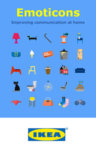 IKEA Emoticons,是宜家公司推出的一款表情包。为什么宜家不务正业要制作表情包?宜家公司表示,让人拥有一个健康美丽的家,是宜家的理念,处理要有舒服的家居,主人们在沟通上也要得到相应的快乐,所以这款表情包就应运而生啦!