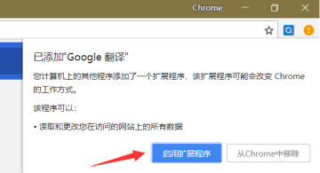 方法2:打开Chrome后,等待约3分钟,浏览器会弹出是否 启用扩展程序的对话框,点击“启用扩展程序”,也可以达到目的。