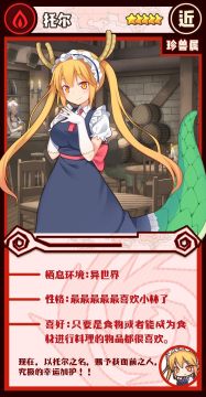 《小林家的龙女仆》联动剧情限时开放,以下是来自开发喵的剧透:驯养师们可以在限定蛋池里抽到康娜等龙女仆角色,体验从蛋开始的龙系魔物娘养成!炼金工坊也加入了专属龙女仆们的装备与装扮,还能打造龙女仆主题农场!