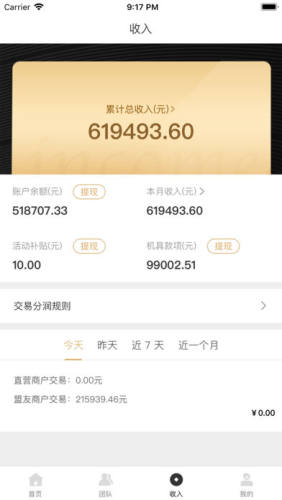 收益日结:激活返现、交易分润、奖励津贴由系统计算,所有收益按时发放,安全可靠。