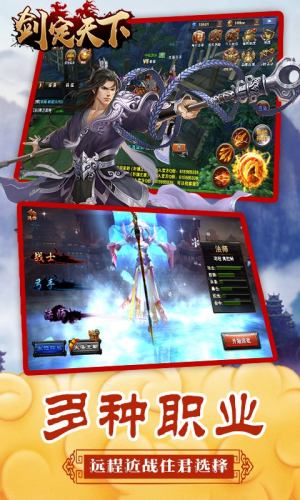 《剑定天下》以赛雅大陆上自古敌对的信仰间发生的冲突和战争为主题,搭建了一个架空魔幻世界。大路上的勇士们研习来自上古的奥术,选择战法弓三种职业之一,遵循心中的信仰、并为之热血奋战。古老的赛雅大陆也在战火的洗礼中焕发熠熠光芒,更多的勇士为了爱与信仰,踏上了荣耀之路!