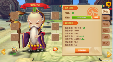 镇元大仙的英雄传记效果如图所示,六个英雄传记主要是提高镇元大仙的恢复能力,其伤害能力相较而言提升的幅度并不大。