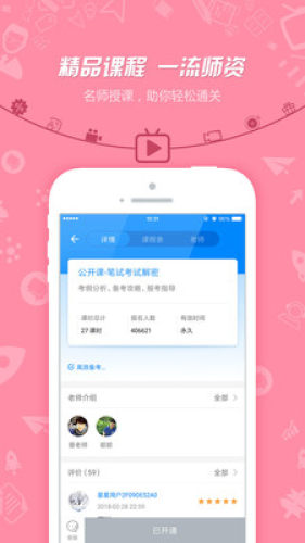 免费公开课,精品课应有尽有,涵盖教师招聘考试、教师资格证考试(幼儿、小学、初中、高中)笔试各科目,结构化、说课、试讲、答辩等面试全流程。
