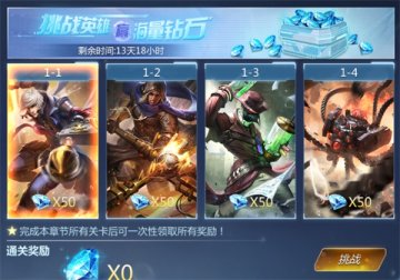 在活动英雄试炼中,每挑战完一个章节即可获得钻石,而且前期的难度并不大,出战英雄全部升满级,穿戴装备,上尉打到第7章至少能拿3000钻石了。这钻石的产出碾压所有其他活动。