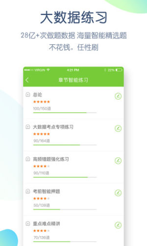 教师招聘万题库app,科学通关懒人必备,学习大数据,考试积分?早知道;名师直播课,开放式互动讲堂,串讲押题天天好课,不花钱,看名师;大数据练习,28亿+次做题数据,海量智能精选题,不花钱,任性刷;模考大赛,全国统一模考,还原官方考纲标准,不花钱,准估分。