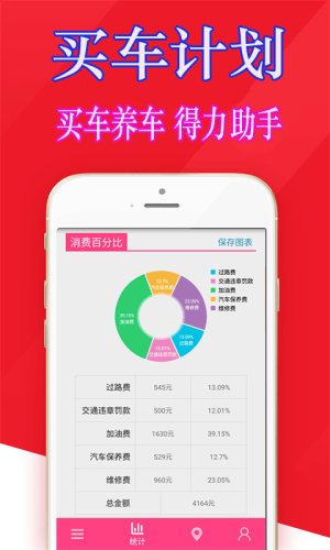 【统计百分比】归总每一笔消费信息,再通过后台强大的统计功能,以图标模式呈现,记录更清晰,用户使用更方便。