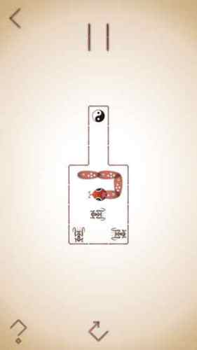 ②游戏动物采用传统剪纸风格,配合类似灯光照射下的隔光布的游戏背景画面,玩家每移动蛇蛇一步,好像电影放映一帧,总能让人想起老皮影戏悠久传统的古味。