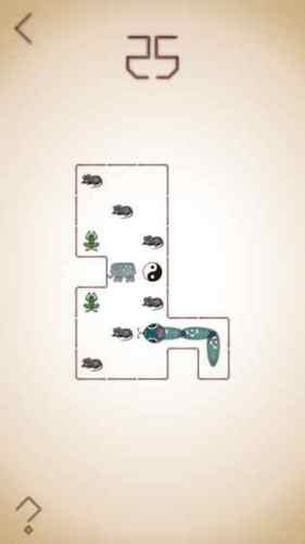 ③游戏玩法简单,主要控制蛇蛇吃掉所以其他动物(老鼠,青蛙,螳螂,大象,乌龟),然后到达八卦即为闯关成功。但游戏中期,后期难度较大,游戏提示项只显示一小部分,对于脑子不好的人来说容易卡关。最后是游戏内置广告,在游戏的正上方,广告面积很小,不会突然跳出草丛,大喊“德玛西亚”,好评。