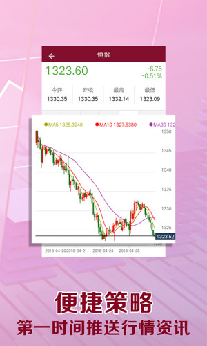 1.移动管控:随时随地管理您的金融资讯定制和查看境外期货产品,如美原油、美黄金、恒生指数等行情;