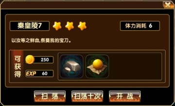 副本推图时获取经验最直接方式,三星通关副本,可使用扫荡瞬间完成副本获取经验。VIP等级达到3级,还可以使用扫荡十次哦。