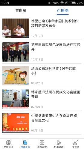 励志于“服务全国,参与世界文化交流的文化服务”的资讯报道界面。