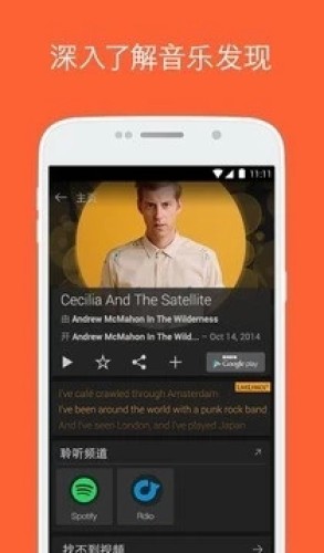 4、领先业界的音乐浏览功能:歌手简介,内置YouTube视频、作品集、演出日期