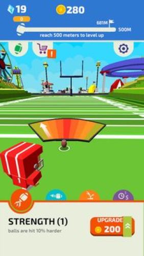 这款游戏中,玩家的目的就是把橄榄球踢得够远,最终能够飞越不同的建筑物,游戏中玩家可以不断收集金币来升级自己的人物。在赛场上将你所有的专注力都投入到球赛中,让你的橄榄球在空中飞行出一道美丽的弧线,首先要越过对方球门,穿越各种障碍物,就像一道绚丽的色彩在空中划过。