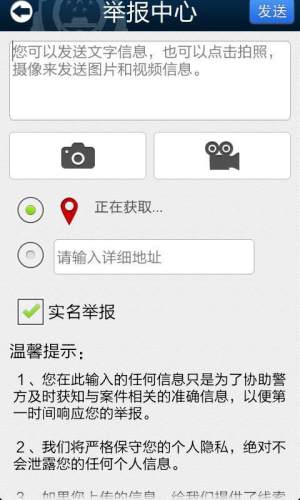 “举报中心”举报犯罪信息,上传视频,图片的证据;