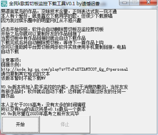 全民k歌剪切板监控下载工具是一款用于下载全民k歌作品的工具,如果你觉得全民k歌上某个人翻唱的很好听,想要下载到本地,可以通过这款软件来下载。全民k歌剪切板监控下载工具可以帮你监控你的剪贴板,当你复制全民k歌的作品播放链接时会自动帮你将其转换为下载链接并下载到本地。