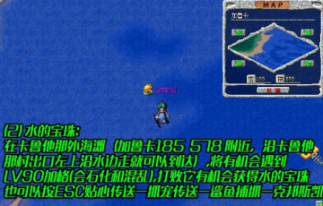 攻击,会与其他鱼系1-9隻一起出现,宠物中溷乱最好先逃再遇敌,以免自己被宠物打飞,打完会有机率得到"水的宝珠"。
