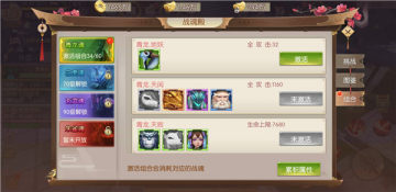 战魂组合涉及到挑战系统中的战魂殿玩法,玩家将挑战各种强大的生灵并获得它们的灵魂,集齐不同的战魂组合在一起可获得强大属性加成。战魂可在组合界面激活强大属性,而且在“图鉴”界面能够对战魂进行出售或购买。值得一提的是该玩法上对时间要求非常高,遇到急需的首领可以消耗元宝再次挑战。