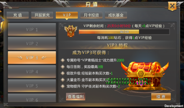 VIP作用十分大,不仅能提高杀怪获得经验,还能降低市场税率和获得个人boss进入的选线其他对游戏有帮助的福利。建议要开VIP就直接买VIP半年卡直升VIP4,越早开VIP4获得的收益越高。要好好玩游戏,VIP是建议一定要开的哦~