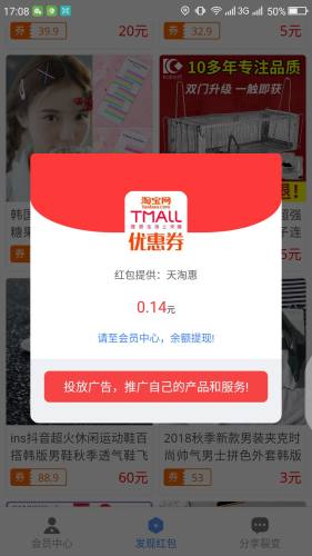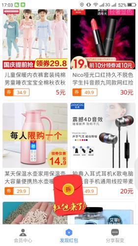 注册登录后点击发现红包,等5.6秒就会出现红包来了,领红包后继续点击另外2个菜单,再点击发现红包,