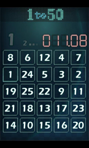 1to50顾名思义,就是要玩家在最短时间内把1到50的数字顺序按完,数字会不断相继弹出,直至游戏结束为止,除了要考验玩家的反应之外,亦需要具备细心的观察力,留意数字的位置,以最快的时间来完成。