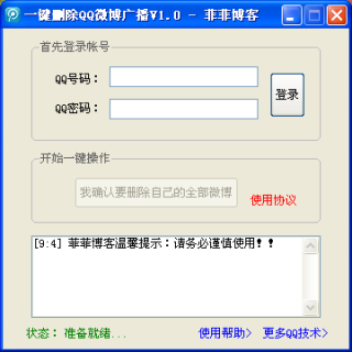 本工具可以一键批量删除自己的qq微博广播,节省大家的时间,批量删除腾讯微博就是如此简单。