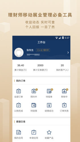 【订单管理】支持在线预约、报单、申请合同、查看佣金等;