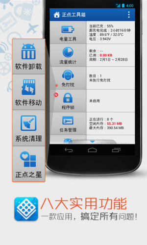 正点工具箱安卓版是一款功能强大的系统管理、优化加速软件。它集Android系统优化、程序锁、免打扰等功能于一身,是手机必备的优化小管家。
