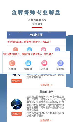权威分析师全天候多时段坐镇直播室,行情走势分析、实时策略指导,提供全方位专业服务,和投资高手零距离交流。