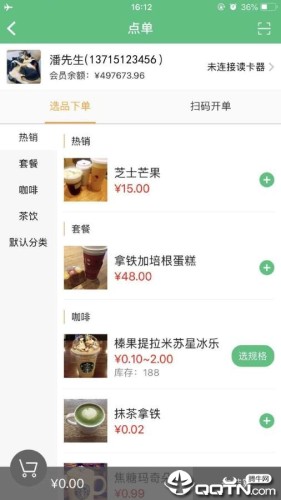 6、支持收银员登录APP,收银员只有基础权限可收银、可管理会员