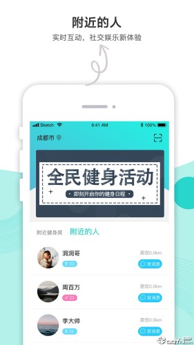 通过纯氧健身app让用户随时随地可以定位并找到附近的健身房,